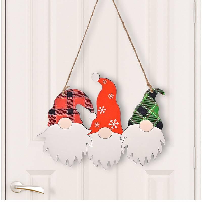 Decoration Christmas Wooden Three Head Rudolph Door Hanging Home Decoration Wall