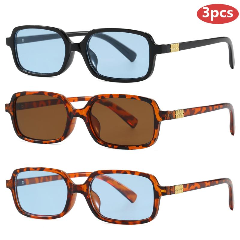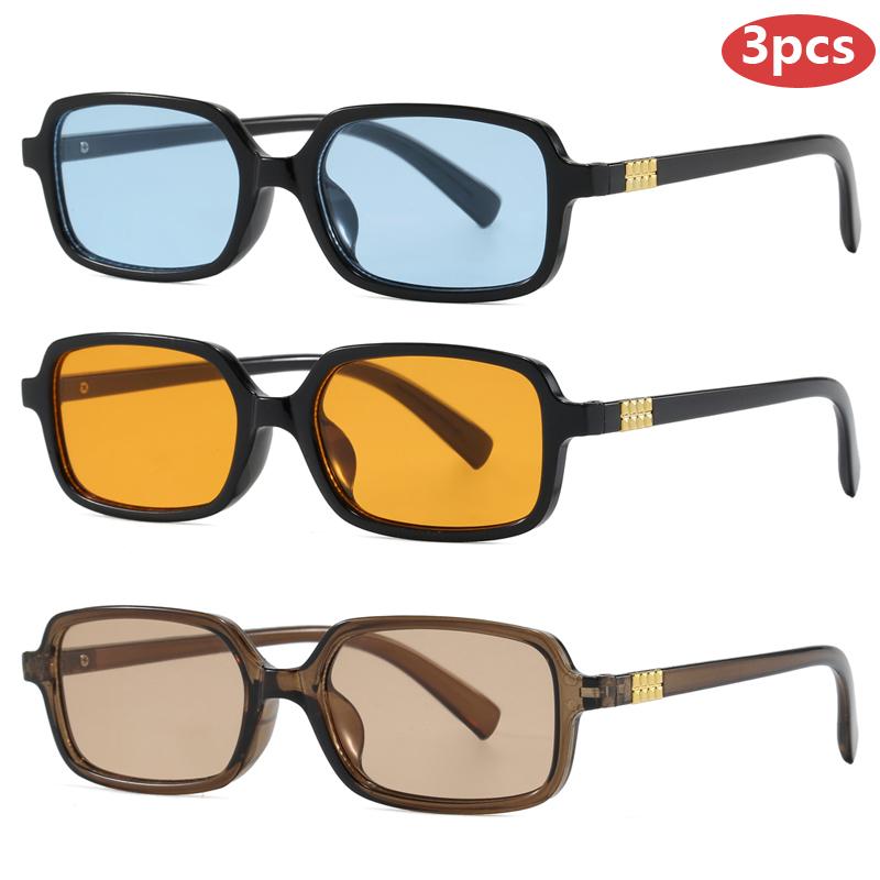 Набор из 3 шт. Классические маленькие прямоугольные солнцезащитные очки Женские модные очки Минималистичный дизайн Солнцезащитные очки УФ400 Унисекс