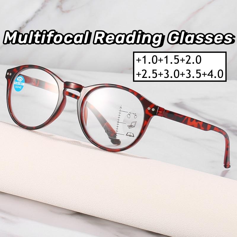 Круглая оправа Прогрессивные очки Мужские сверхлегкие HD мультифокальные очки для чтения Женские очки для пресбиопии с блокировкой синего света — купить товар онлайн с бесплатной доставкой по всему миру!