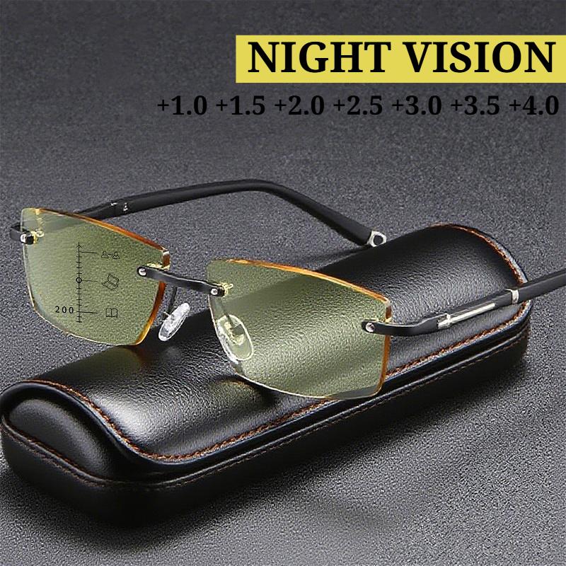 Мультифокальные очки для чтения с ночным видением для мужчин и женщин, безободковые квадратные очки, модные новые очки для близи и дали при пресбиопии +4.0 — купить товар онлайн с бесплатной доставкой по всему миру!
