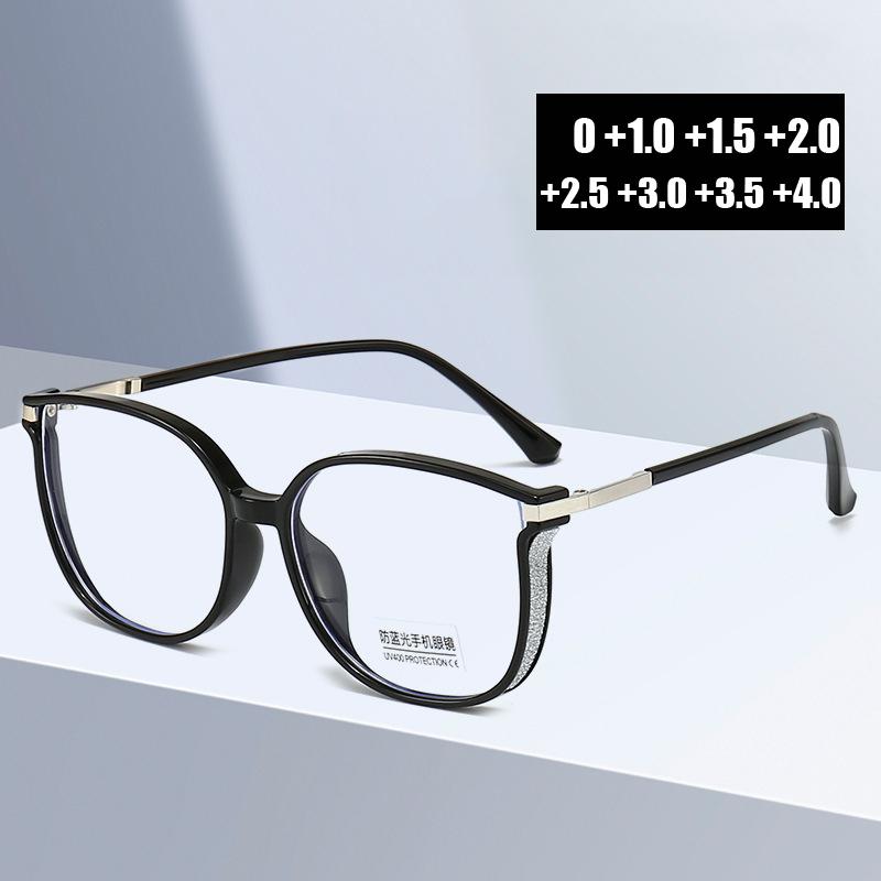 Большие женские очки для чтения, модные трендовые квадратные оправы, анти-синий свет, пресбиопия, готовые очки для дальнего зрения по рецепту