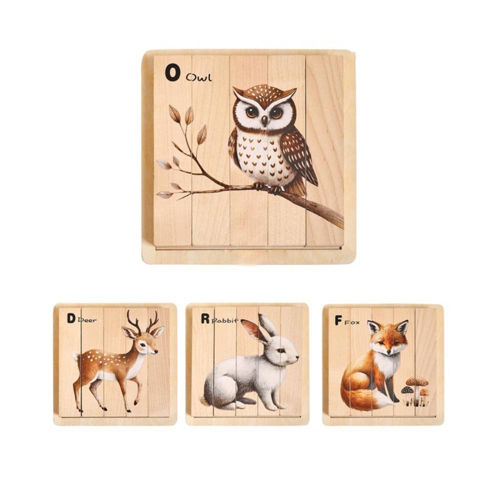 Matching Animal Theme Block Puzzle Toy Wooden Wooden Rotating Jigsaw Kids Preschool