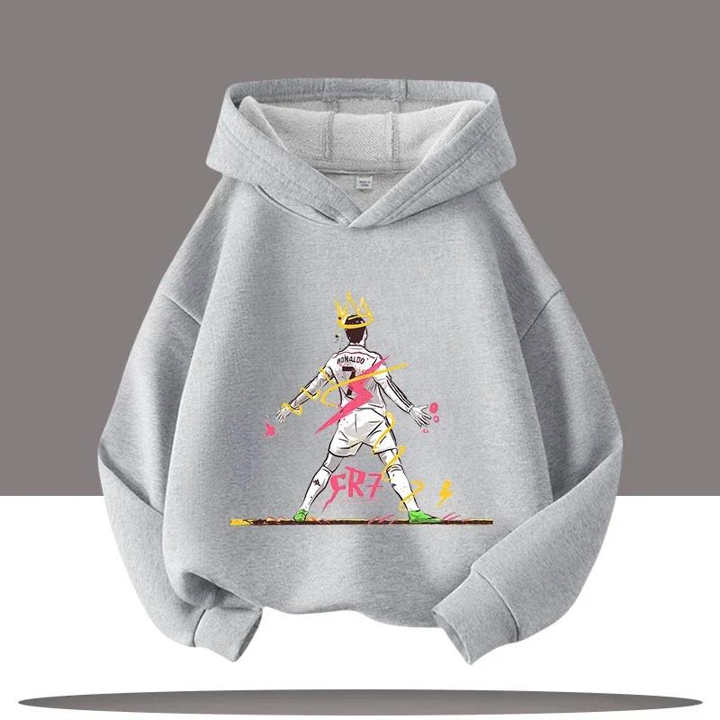 Новая зимне-осенняя одежда Толстовка с капюшоном для детей Мальчиковая спортивная футболка Футбольная звезда Мультяшный принт Детские повседневные толстовки