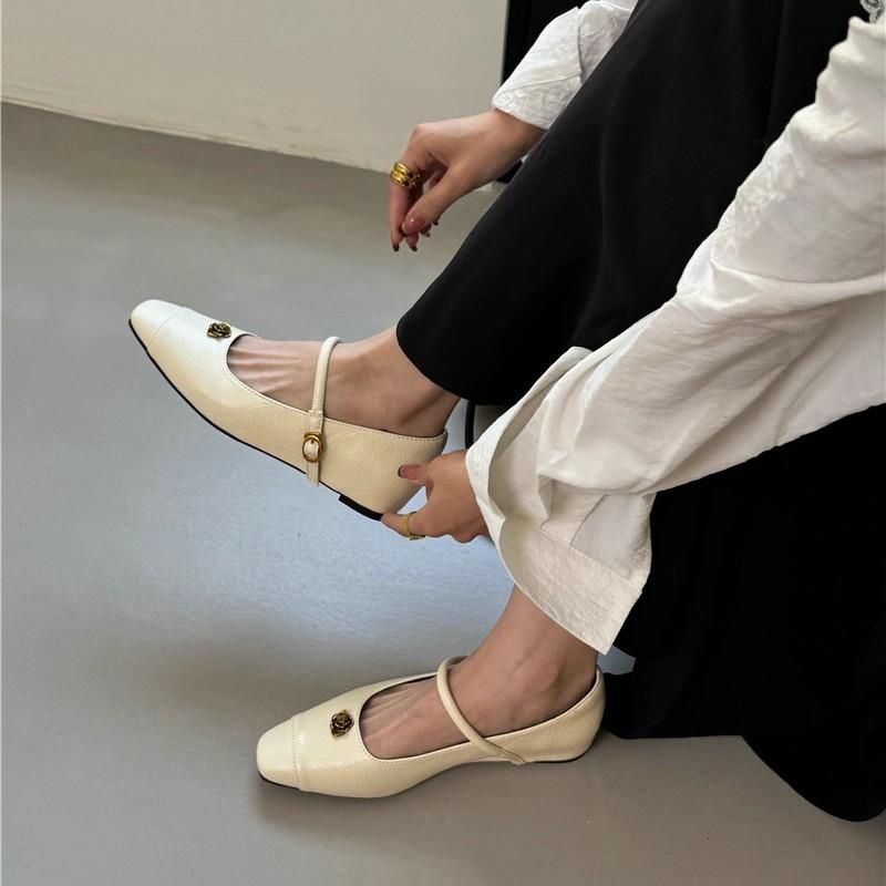 Внутреннее увеличение высоты маленький ароматный ветер одинарные туфли женские 2025 весна новые квадратный носок маленькие кожаные туфли ремешок с пряжкой камелия Мэри Джейн sho
