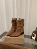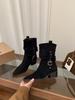 Женские ботильоны Мартин на высоком каблуке, замшевые, с острым носком, узкие, осенне-зимние 2025, в стиле вестерн, ковбойские, средней высоты, на подкладке, короткие