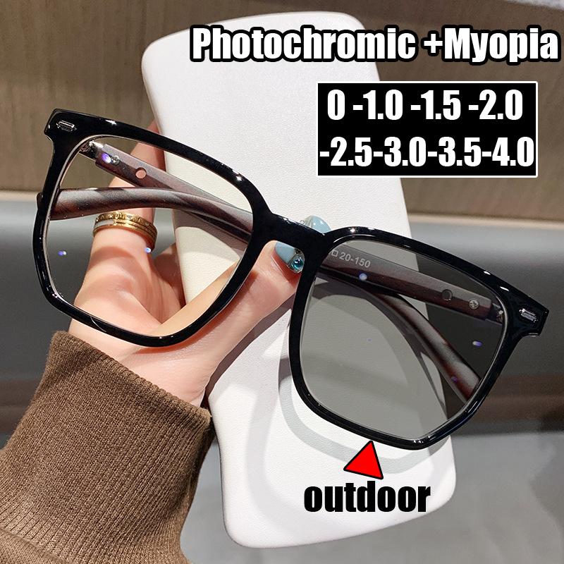 Унисекс Женские Мужские Квадратные Очки для Близорукости Готовые Фотохромные Солнцезащитные Очки Диоптрии от 0 до -4.0 Меняющие Цвет Очки для Миопии
