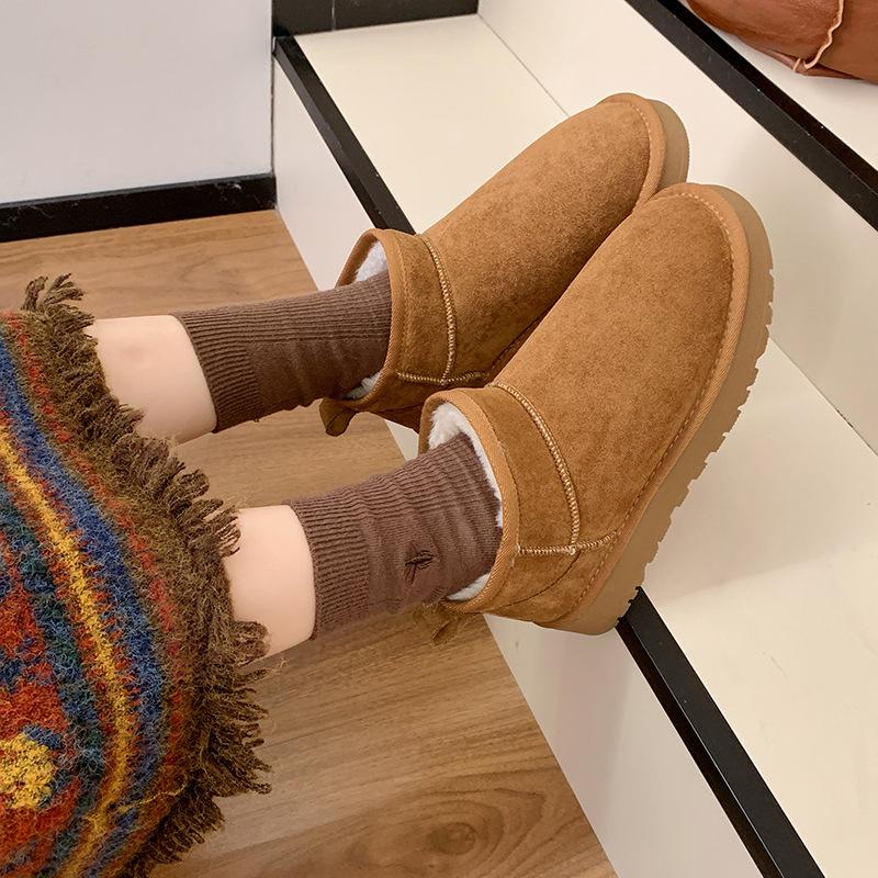 Зимние ботинки на толстой подошве женские меховые цельные 2025 новые зимние бархатные туфли-хлебушки короткие с высоким голенищем Северо-восточные хлопковые ботинки