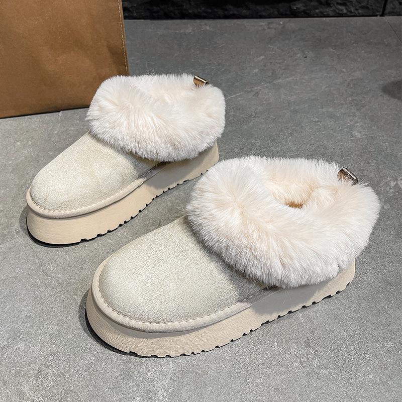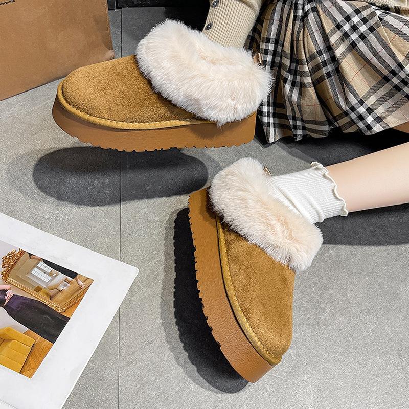 Северо-восточные сноубутсы на толстой подошве женские зима 2025 новые набивные утолщенные теплые пушистые короткие снежные хлопковые туфли
