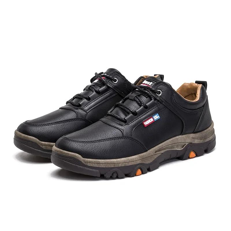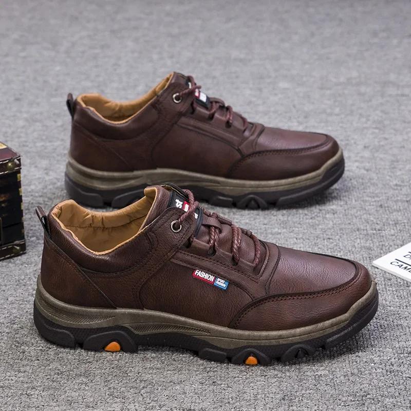 Походные кроссовки для мужчин, дышащие уличные треккинговые спортивные мужские туфли для скалолазания и прогулок, кроссовки из искусственной кожи, плюшевые теплые2024