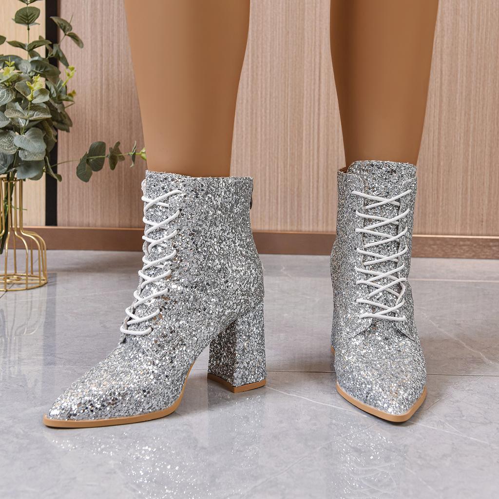 Элегантные женские ботильоны до щиколотки Зимние на шнуровке Удобные ботинки до середины икры Женские больших размеров Сексуальная роскошная обувь на высоком каблуке Женская