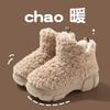 Версия плюшевых хлопковых ботинок, женские зимние новые простые модные плюшевые теплые модные зимние ботинки на толстой подошве, повседневная обувь 2024