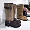 Ma Sichun same thick heel suede splicing knight boots women's boots 2025 autumn and winter belt buckle thin boots