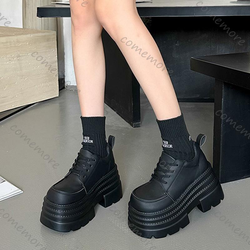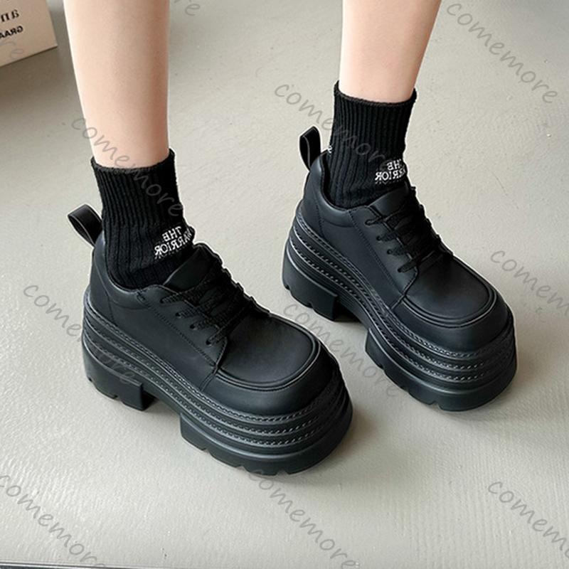 Празднуйте Туфли-лодочки на толстой подошве для женщин Весна Осень Новые С увеличением высоты Черные Кружевные Лоферы Мэри Джейн Женская Обувь на высоком каблуке