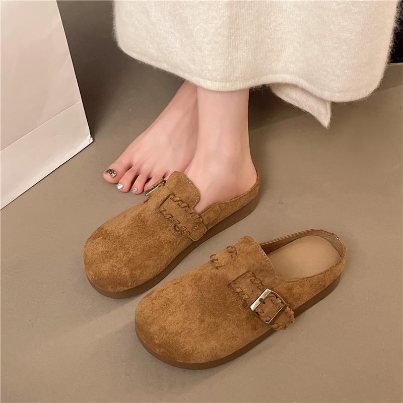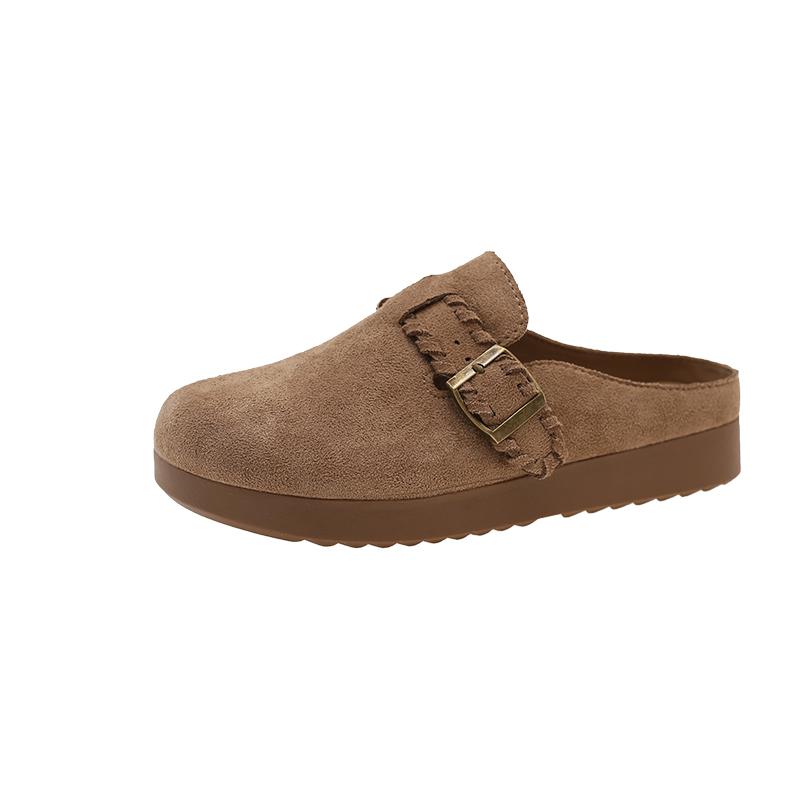 Новые туфли-лодочки с круглым носком, глубоким вырезом, металлической пряжкой, платформой из коровьей замши, нескользящей износостойкой плоской подошвой, с закрытым носком для осени