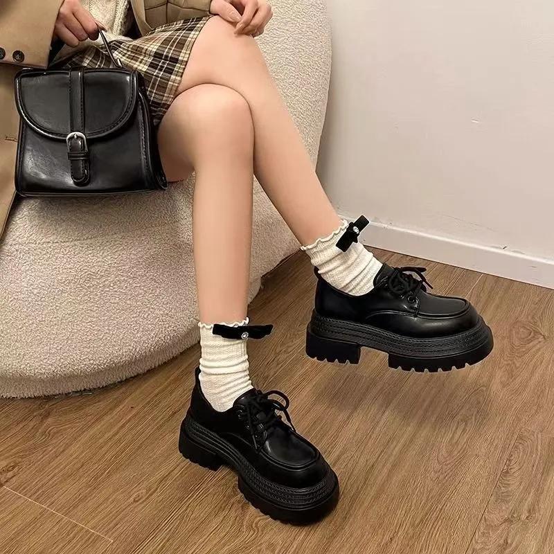 Женская обувь 2025 Бренд Шнуровка спереди Женские туфли на высоком каблуке Круглый носок Бестселлер Однотонные Уличные Туфли на платформе Zapatos