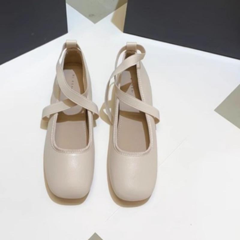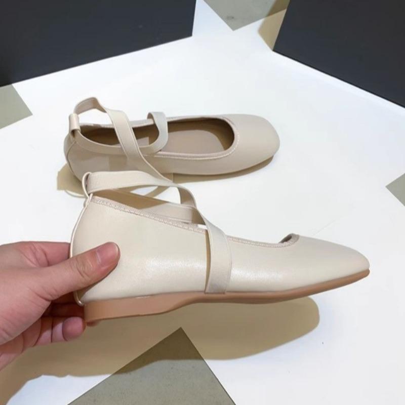Женские туфли на плоской подошве Весна Новые С квадратным носком С мелким вырезом Мягкая подошва Противоскользящие Износостойкие Низкие туфли