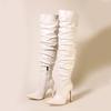 Comemore Плиссированные ботфорты до бедра Длинные Сексуальные Ботильоны с острым носком на молнии выше колена Женские ботинки Высокий каблук Однотонная обувь для женщин