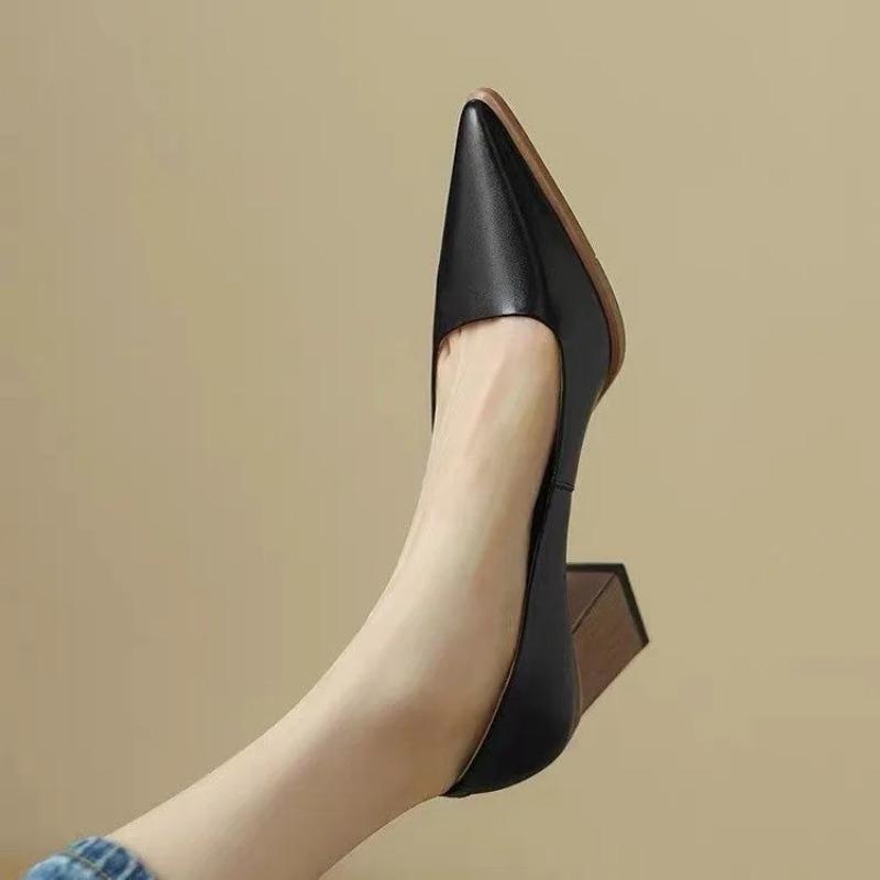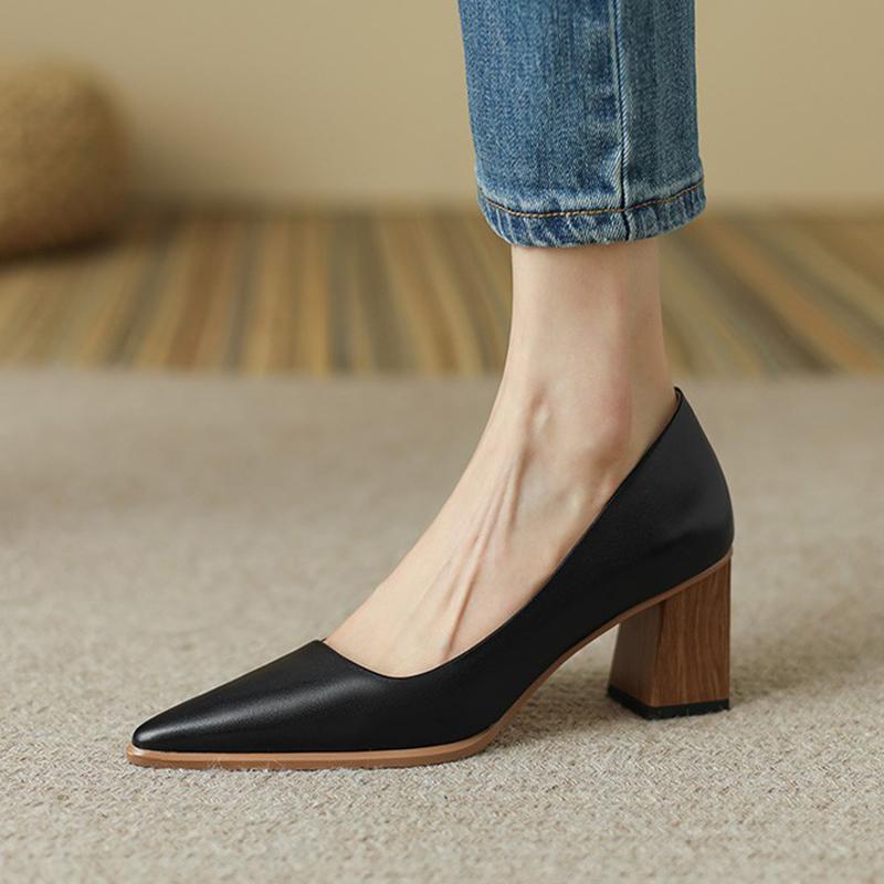 Праздничные туфли на блочном каблуке для женщин, туфли-лодочки на платформе с острым носком, слипоны, черные, телесные, из мягкой кожи, туфли на высоком каблуке, zapatos