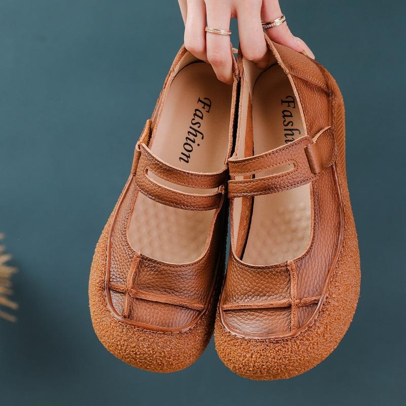 Женские удобные балетки из натуральной кожи с перфорацией, туфли Мэри Джейн, легкие, мягкие, на липучке, обувь медсестры, женские мокасины на ремешке