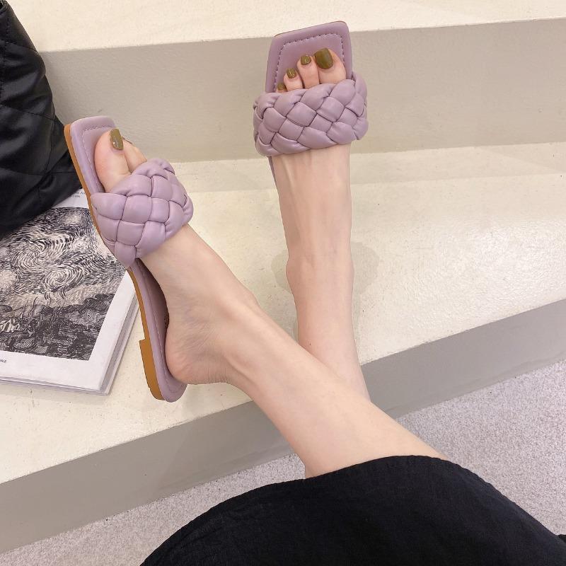 Летние женские новые сандалии/шлепанцы на плоской подошве с квадратным носком, плетеные, женские большого размера, пляжные, универсальные, для отдыха