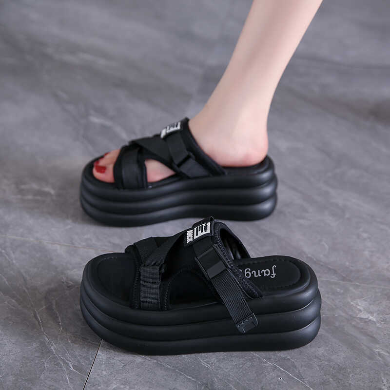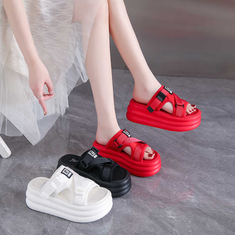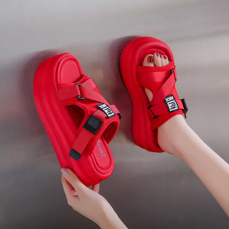 Летние женские шлепанцы с пряжкой, шлепанцы, пляжная обувь, танкетка, шлепки, женские шлепанцы на платформе, конфетные цвета, уличные сандалии 7 см