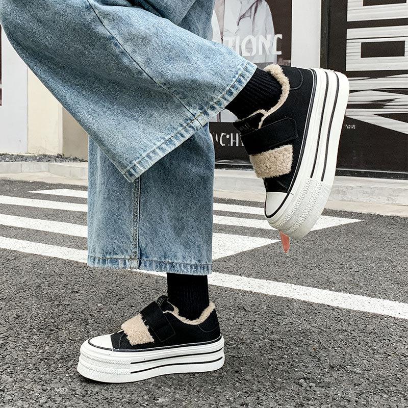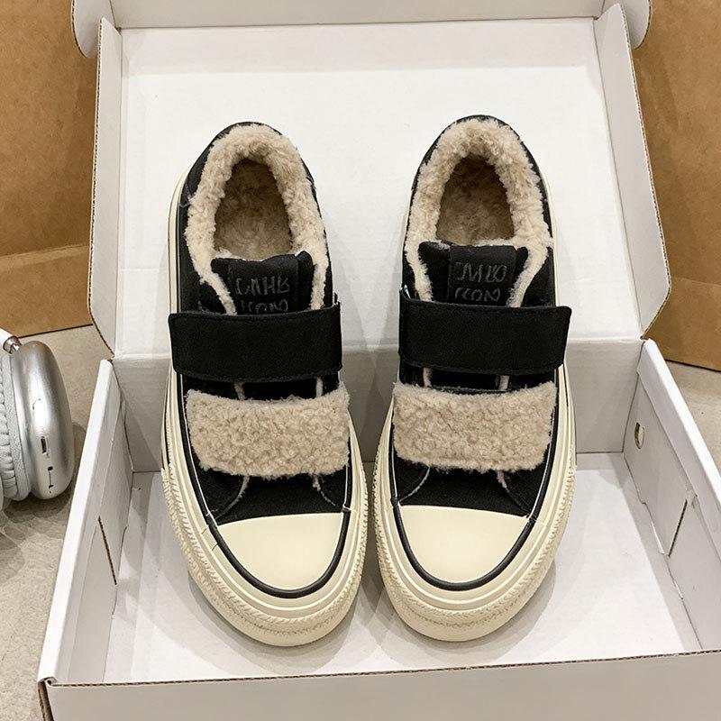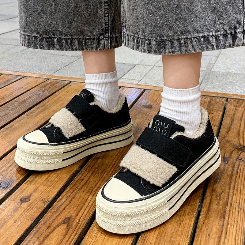 Массивные туфли на платформе, маффины, матовые, имитация коровьей замши, бархат, овечья шерсть, липучка, повседневные кеды, 2025, меховая отделка, спортивная обувь