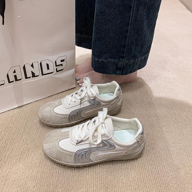Корейская версия повседневного дизайна белые женские туфли 2025 осень новый тренд удобные универсальные не устают ноги круглый носок немецкие тренировочные туфли