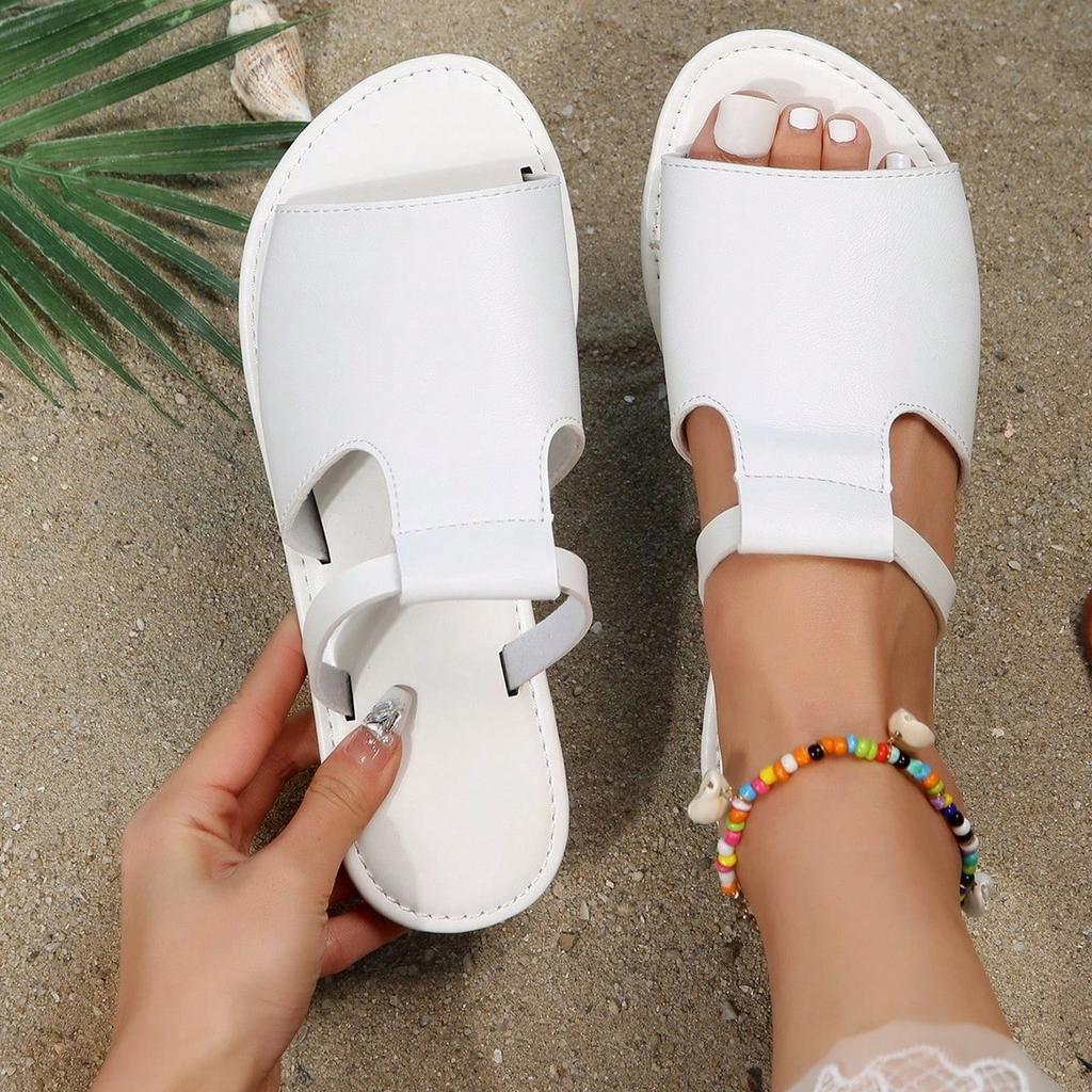 Летние Новинки Повседневные Однотонные Шлепанцы с Открытым Носком Удобные Нескользящие Женские Сандалии на Низком Каблуке 36-43