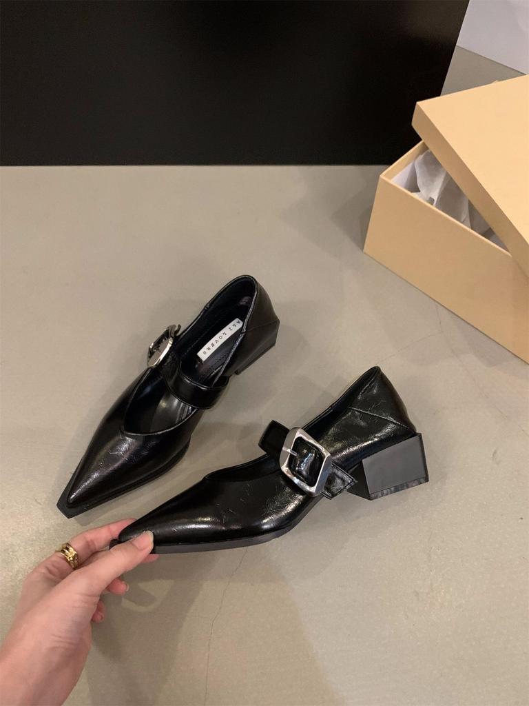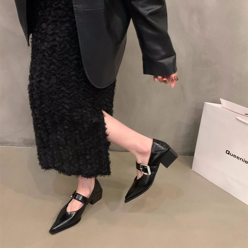 Французские черные туфли-лодочки женские туфли 2025 новая весна, осень и зима средний и высокий каблук вечерние туфли Мэри Джейн маленькие кожаные туфли