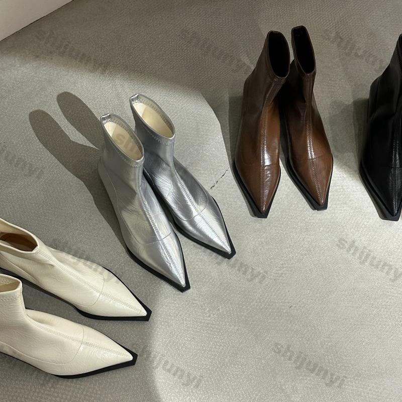 Женские остроносые ботильоны на среднем каблуке, остроносые кожаные сексуальные ботинки челси, трендовый дизайн, зимние новые туфли-лодочки, дизайнерские короткие ботинки для женщин