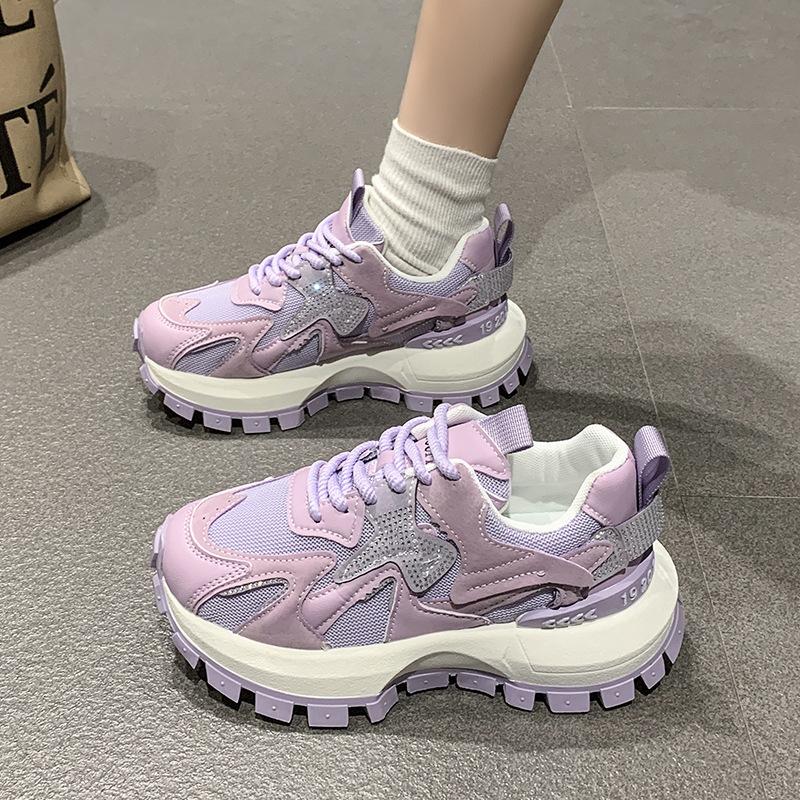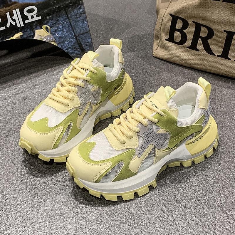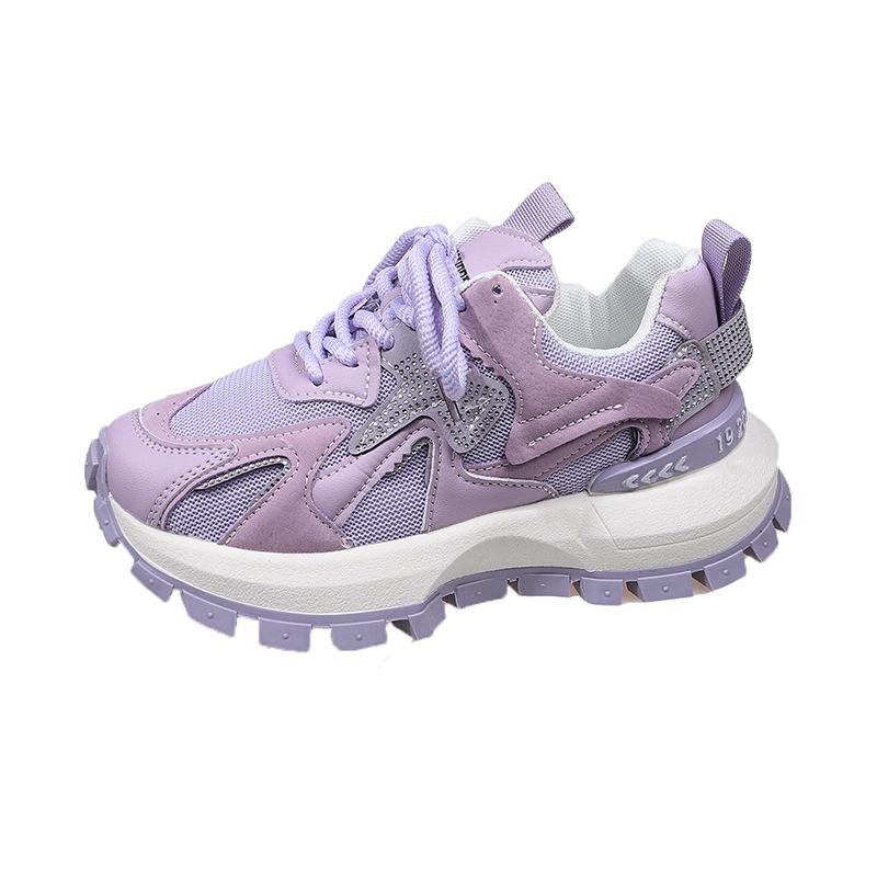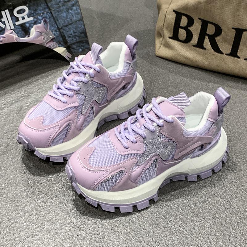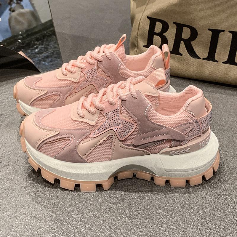 2025 весна и лето новые дышащие сетчатые повседневные туфли платформа стразы модные универсальные спортивные туфли Форрест Гамп папины кроссовки