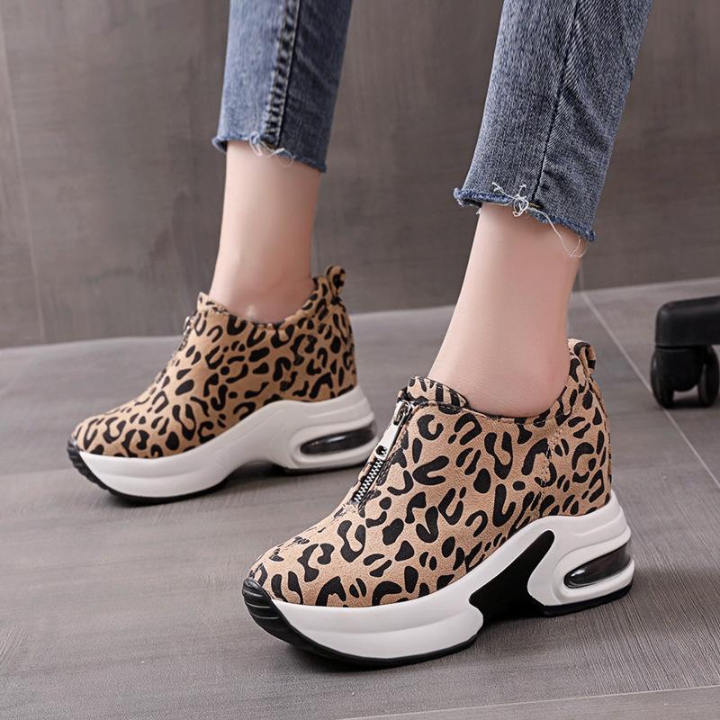 Обувь осень и весна новый внутренний рост студент повседневная спортивная обувь леопардовый принт слипоны мокасины кроссовки P793