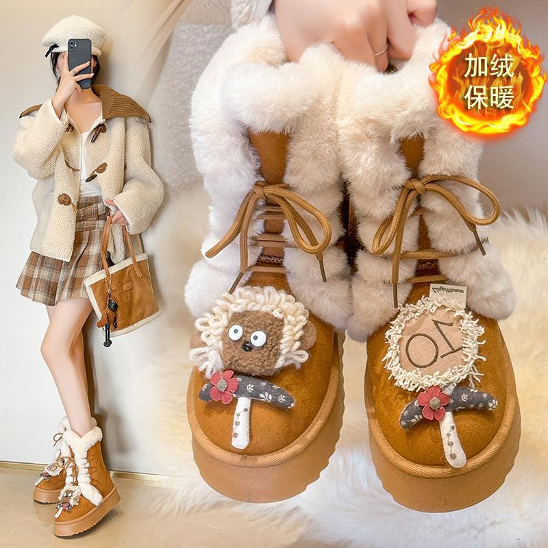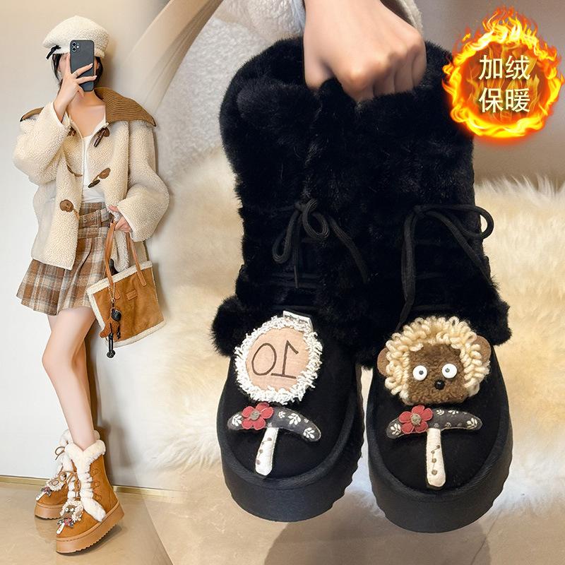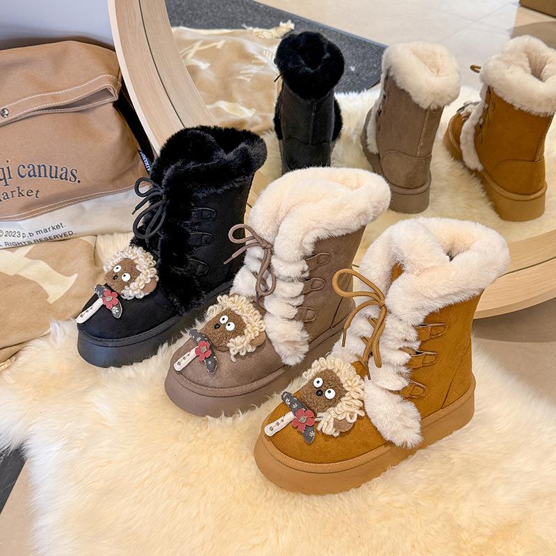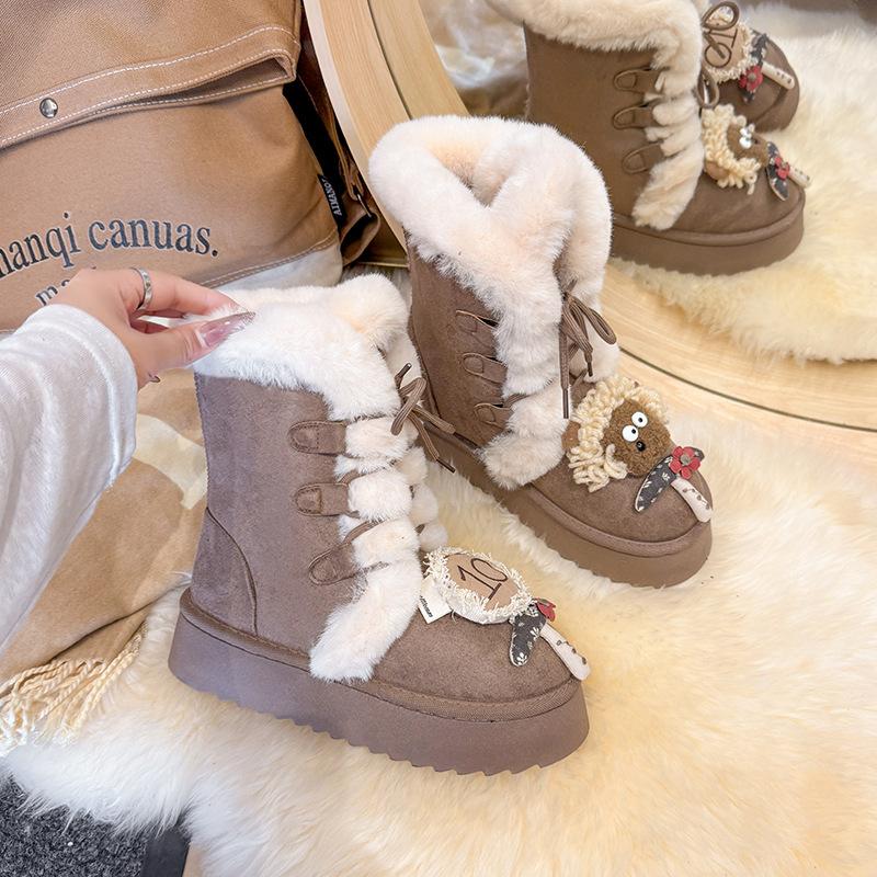 Женские зимние сапоги на толстой подошве 2025 новая зима мех интегрированный Северо-Восток теплые нескользящие утолщенные высокие сапоги