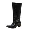 Острые сапоги Spice Girl на толстом каблуке Рыцарские сапоги Женские новые осенне-зимние сапоги-ботфорты винтажные высокие сапоги с заклепками P753