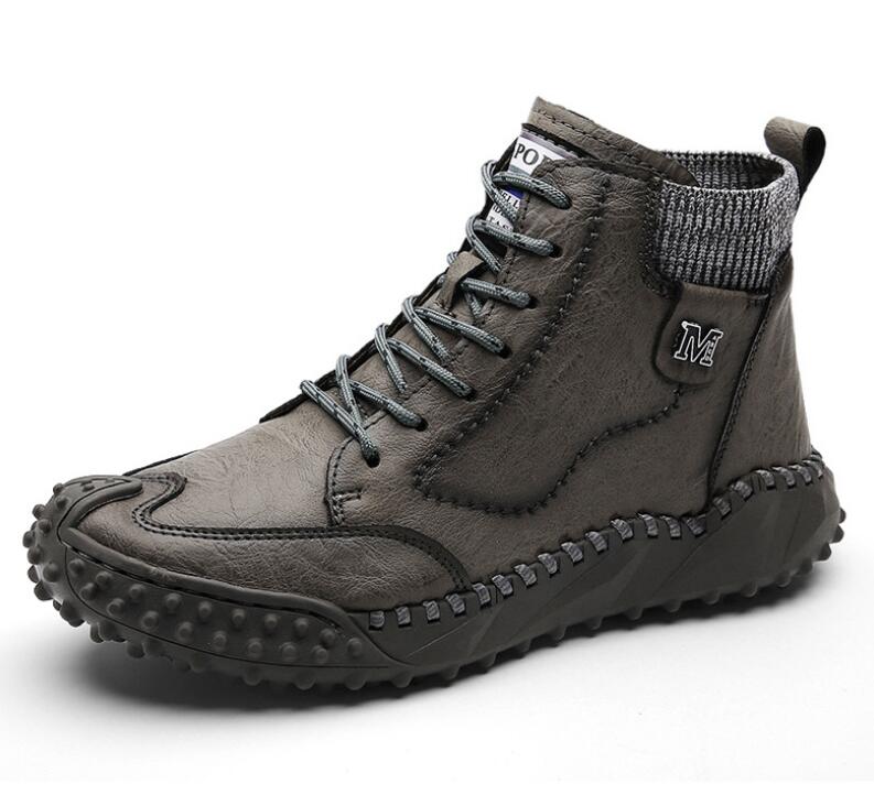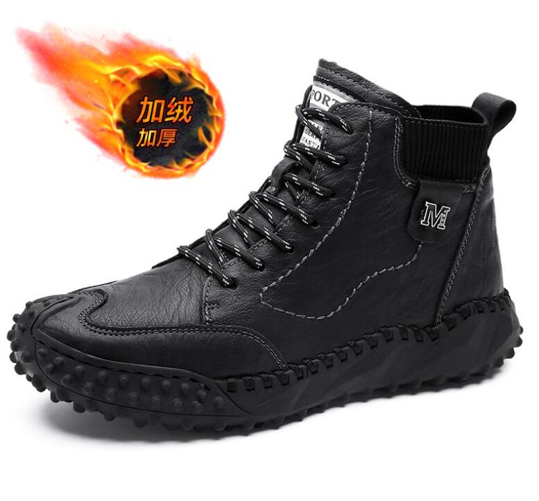 Зимние мужские ботинки из натуральной кожи, мягкие кожаные плюшевые теплые зимние ботинки, водонепроницаемые мужские ботинки для активного отдыха, мотоциклетные ботинки H759