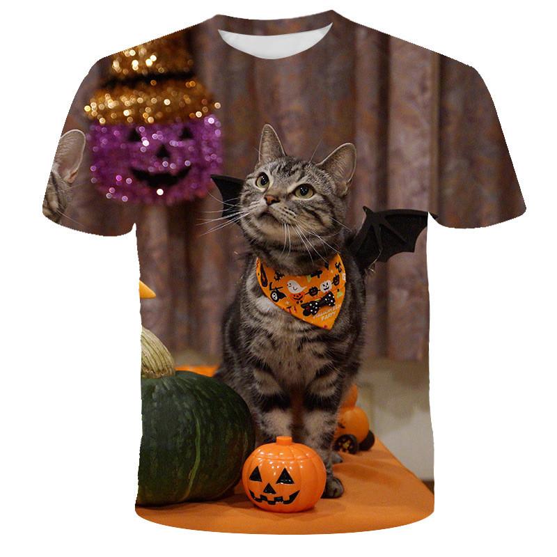 Летняя новая футболка с коротким рукавом и круглым вырезом свободного кроя с 3D-принтом на Хэллоуин