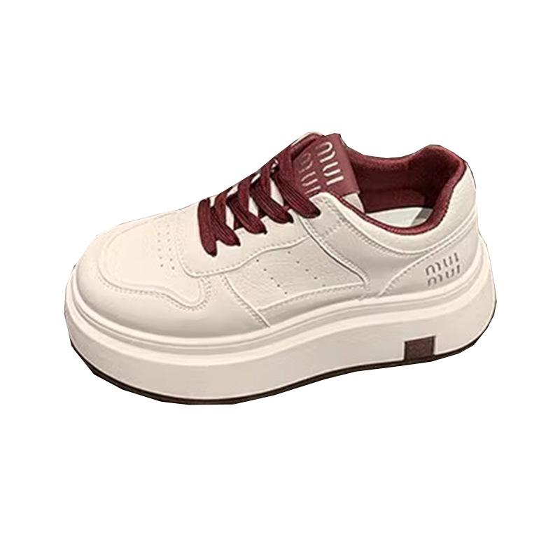 Маленькие белые туфли на толстой подошве высокого качества, женская обувь 2025 весна, новая студенческая универсальная обувь для отдыха и спорта на шнуровке, увеличивающая рост