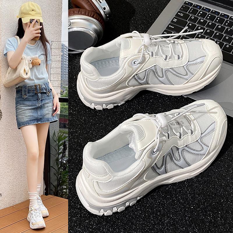 Европейские 2025 новые летние сетчатые дышащие кроссовки-папы женские на платформе модные повседневные спортивные туфли универсальные маленькие белые туфли