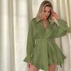 Осенний женский пижамный комплект с оборками, длинными рукавами, халатом из жатого хлопка и шортами