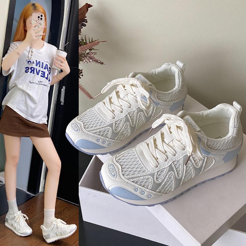 Женские дышащие повседневные спортивные кроссовки, летняя сетка, новинки европейского рынка 2025, модные универсальные кроссовки на толстой подошве