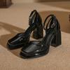 2025 новые французские черные квадратный носок водонепроницаемые туфли на высоком каблуке женские с ремешком-пряжкой на подъеме толстый каблук туфли-лодочки с закрытым носком сандалии