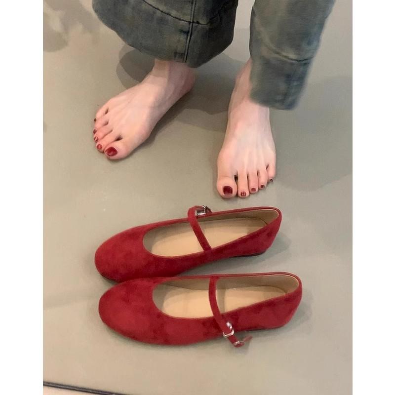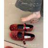 Версия из овчины~ Натуральная кожа ретро плоская подошва красный рот одинарные туфли женские туфли-лодочки корейская версия туфли Мэри Джейн балетки