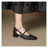 Французские плетеные туфли Мэри Джейн с отверстиями, туфли-одинарки, новинка весны и лета 2025 года, квадратный носок, ремешок с пряжкой на одно слово, сандалии на среднем каблуке
