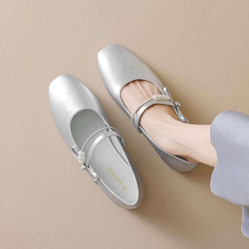 Weiwei Girl 8658-2 French Bow Mary Jane Shoes Women's Flat Bottom One Word with Light Mouth Single Shoes with Skirt
