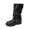 Женские брючные ботинки на толстой подошве в ретро-стиле с круглым носом 2025 года, новые зимние, нишевый дизайн, ботинки, ботинки со складками, ботинки