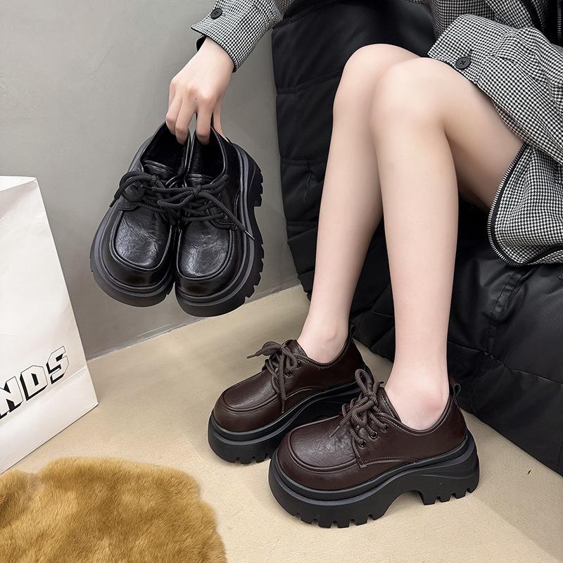 Туфли на толстом каблуке и платформе в британском стиле, женские, новые весна-осень 2025 года, с юбкой, с круглым носком, на шнуровке, Мэри Джейн, одинарные, женские