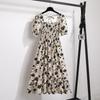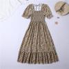 Весеннее цветочное миди-платье с квадратным вырезом, кружевом и рукавами-буфами