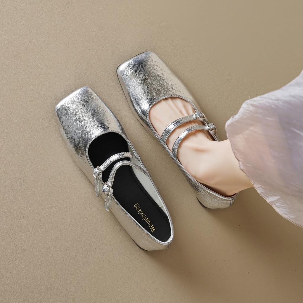 Weiwei girl 8393-1 квадратная головка одиночные туфли женские на плоской подошве французские однословные поясные туфли Мэри Джейн корейская версия мягкая подошва женские туфли
