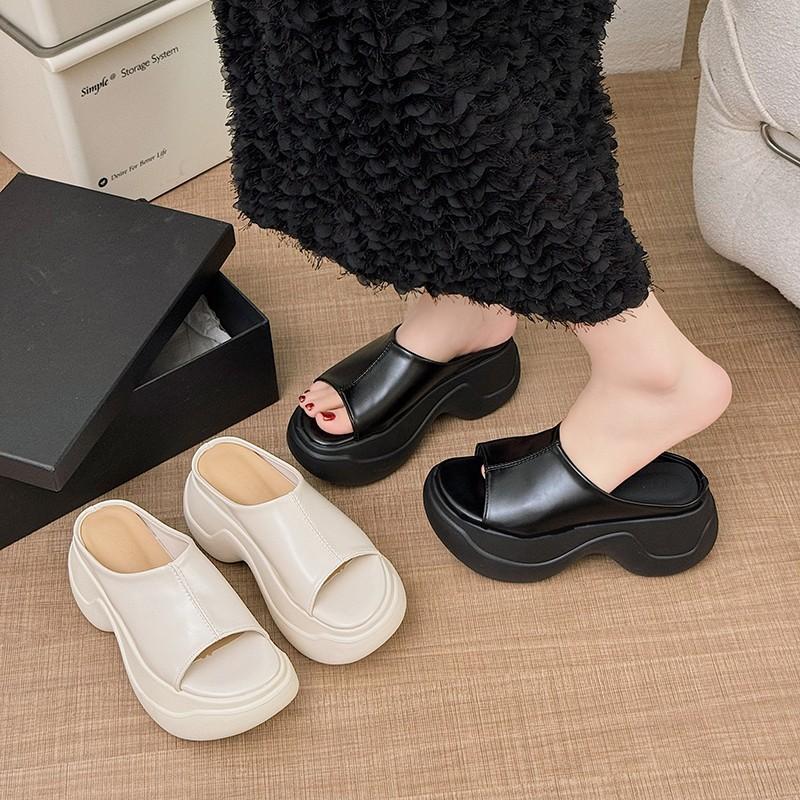 Маффиновые толстоподошвенные крутые тапочки женские летние новинка европейская станция ниша маленький человек рост пляжные однословные шлепанцы