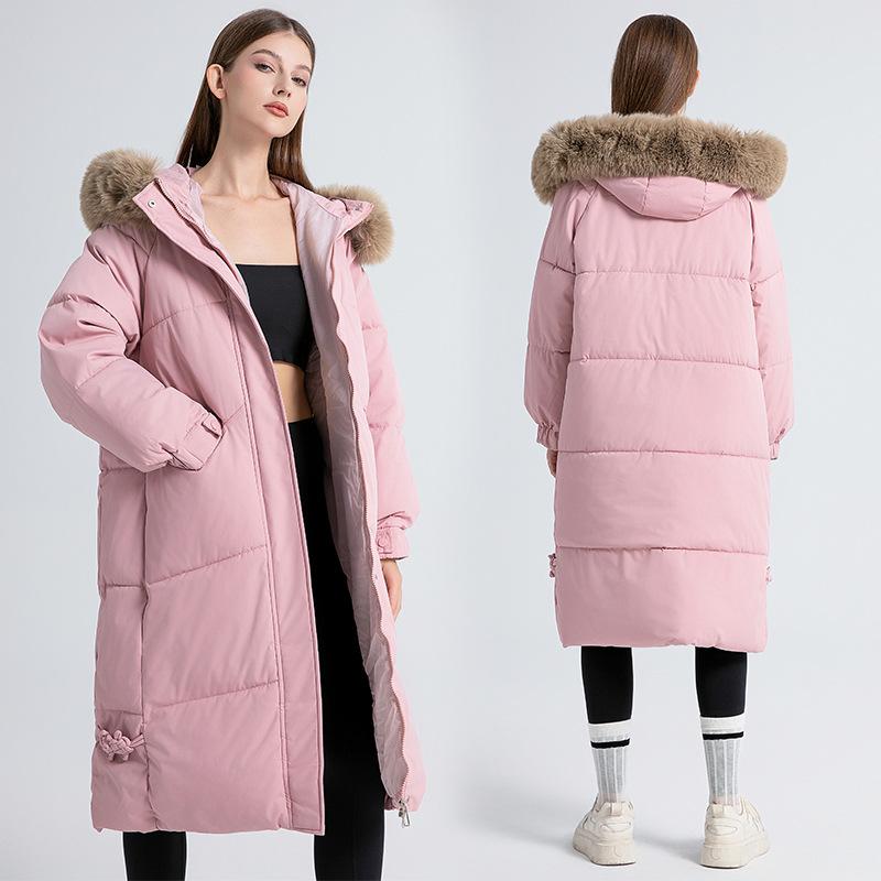 Зимнее пальто женское хлопковое длинное до колена нового стиля с большим меховым воротником и утолщенное